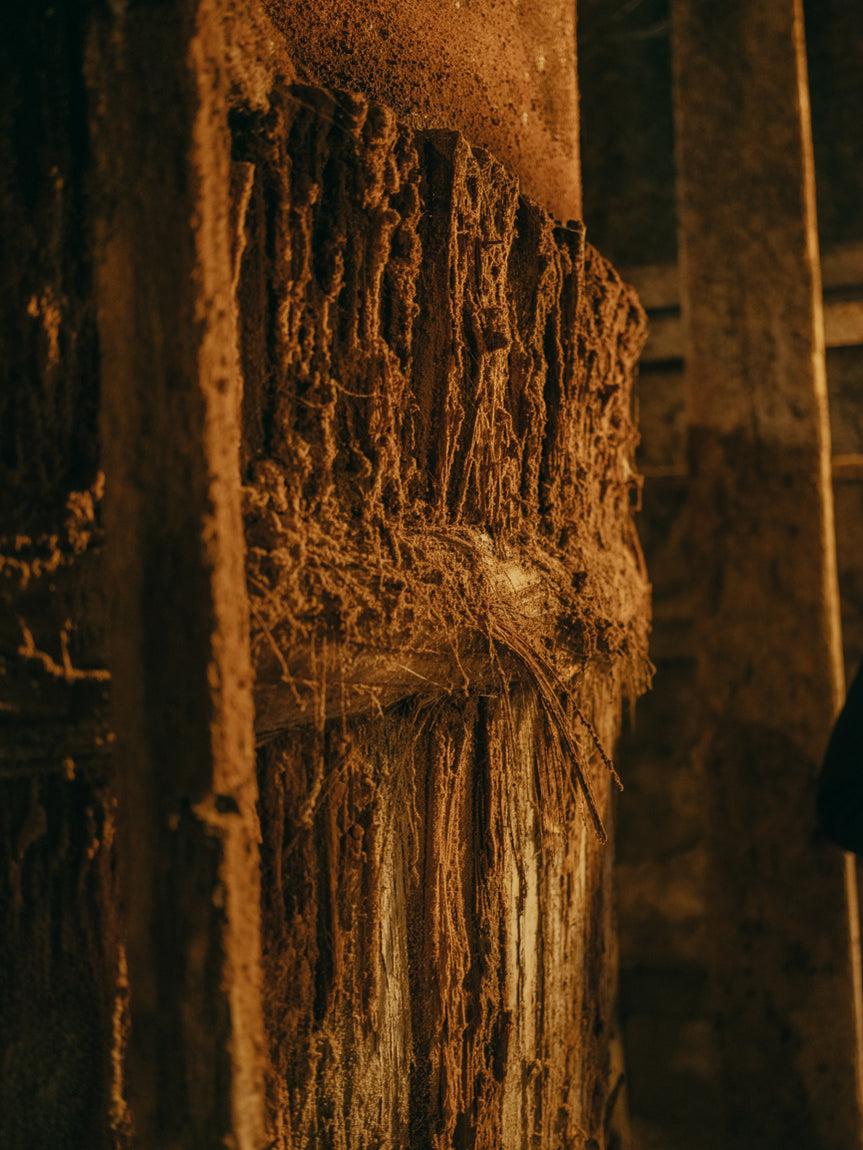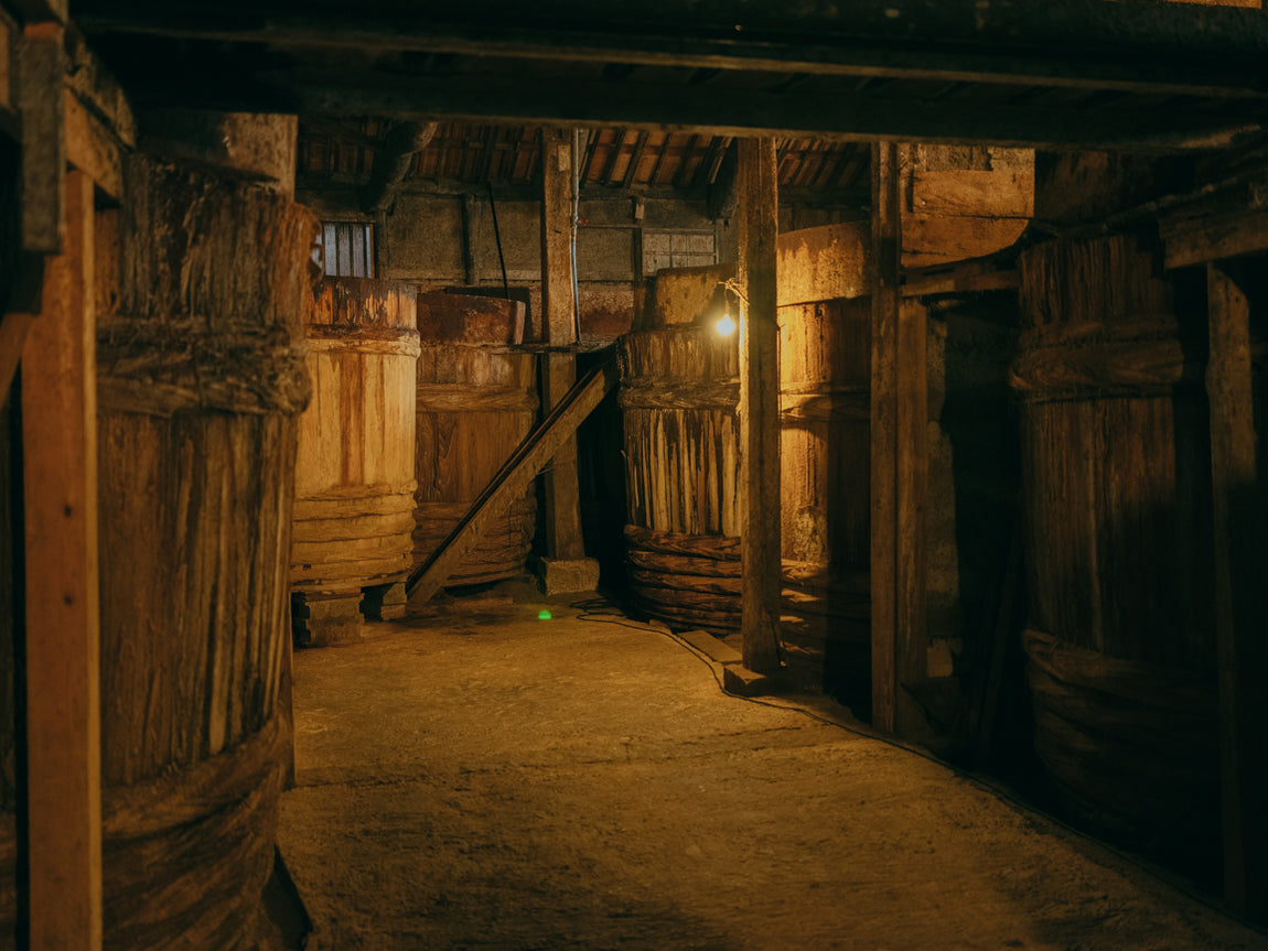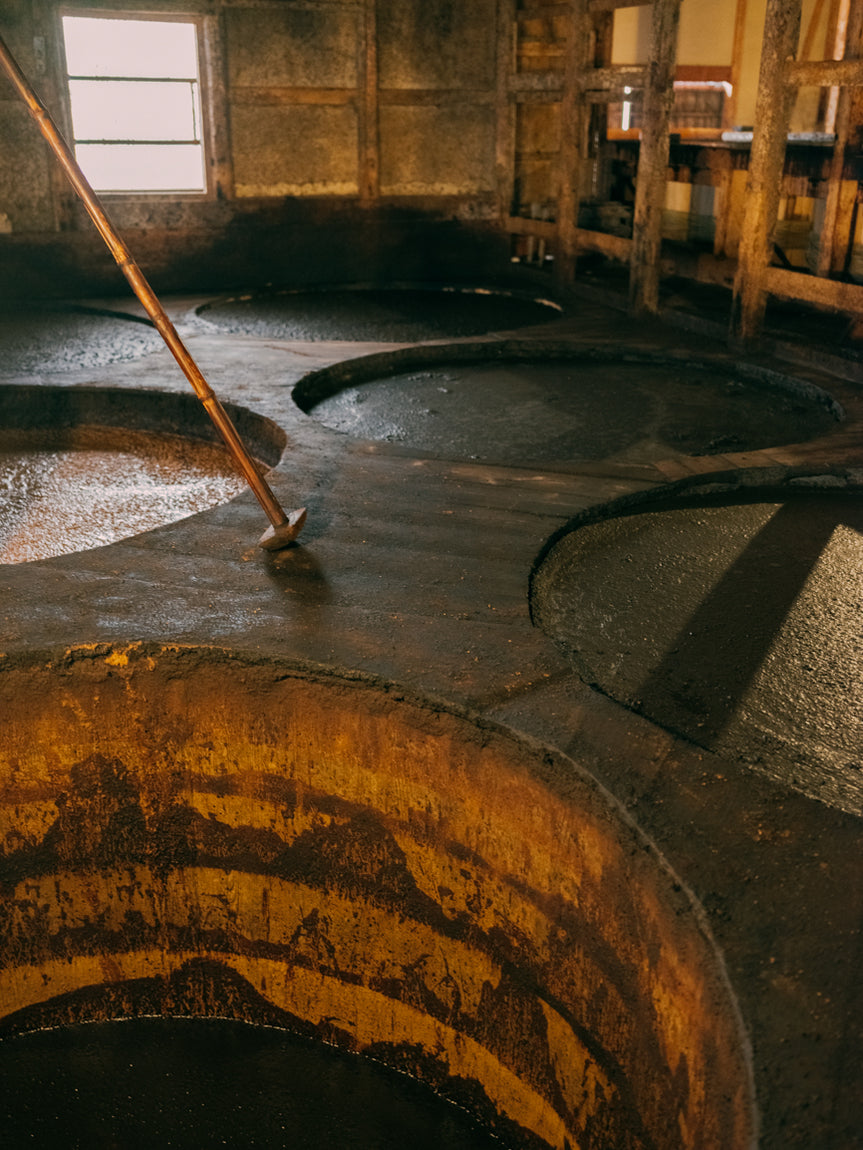 国の登録有形文化財であるヤマロク醤油のもろみ蔵は、築100年を超える木造平屋。その梁や土壁、土間、木桶の繊維の中には100種類もの酵母菌や乳酸菌が暮らしています。微生物にとって居心地の良い環境を明治時代から保ち続け、寿命100〜150年と言われる木桶で仕込み、薬品は一切使わず自然の力だけで醸す。そうして生きた蔵と共に唯一無二の味を造っています。