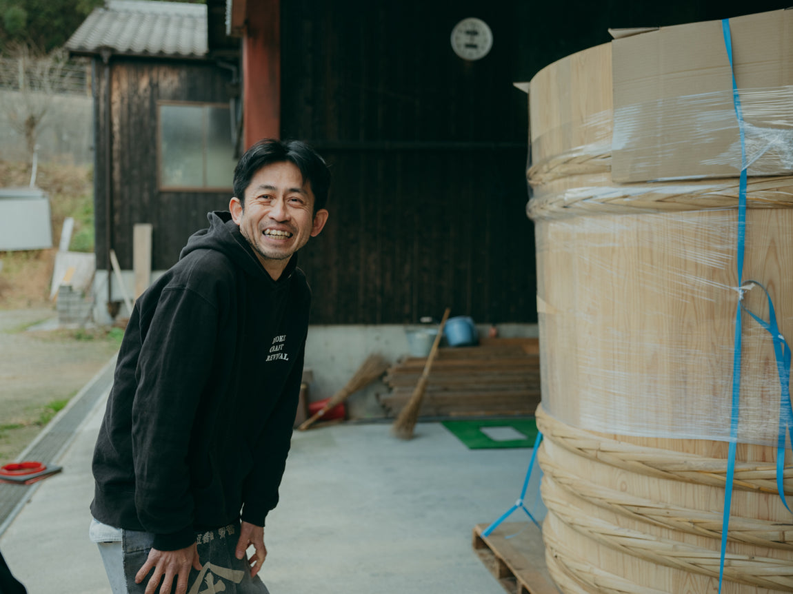 現在ヤマロク醤油にある木桶は87本(全国7位)。かつて木桶は酒屋が新品を数年使い、職人が組み直し、醤油屋や味噌屋に渡るという循環が成り立っていました。しかし次第に生産効率を理由に桶はタンクへ置き換えられ、2010年頃には醤油用の大桶を組み上げられるのは全国で1社のみに。木桶絶滅の危機を感じた山本さんはその製桶所に新規発注をした上、地元の大工と自ら木桶作りの修行に参加。現在は技術を共有する場として年に一度「木桶サミット」を小豆島で開催し、全国から集う蔵元や職人と共に日本の木桶文化を育んでいます。