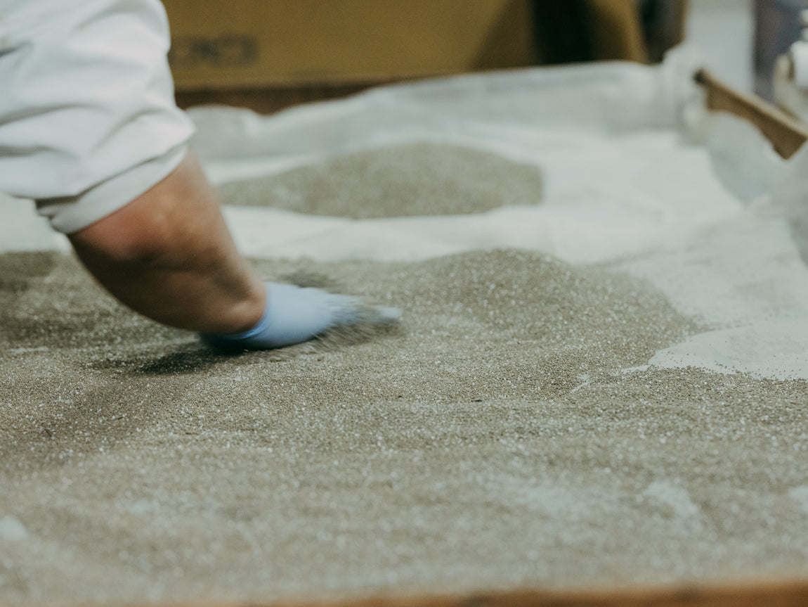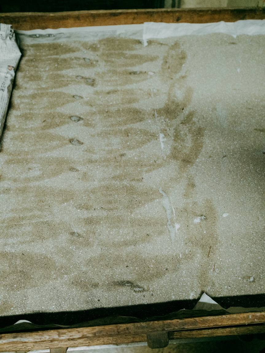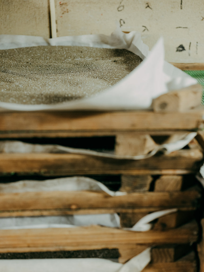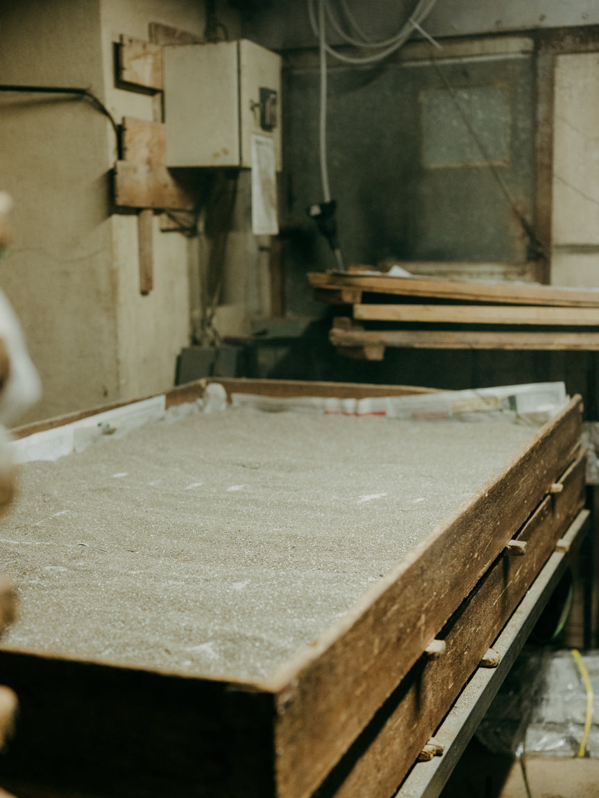 日光や風を魚に当てることで水分を抜く「天日干し」や「機械乾燥」と異なり、火山灰が余分な水分と臭みを吸収することで干物を作る「灰干し」。島屋では、長崎県の雲仙普賢岳の70年物の火山灰を用いています。灰干しは、空気に触れないため、旨みたっぷりの脂が酸化したり表面が乾いたりせずにゆっくりと熟成させるため、焼き上がりはしっとり柔らか、噛んだ瞬間にジュワッと溢れる上質な脂が醍醐味です。