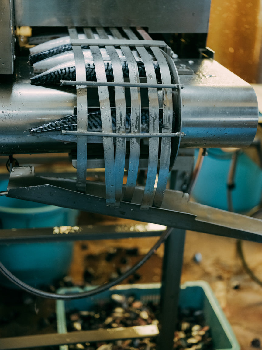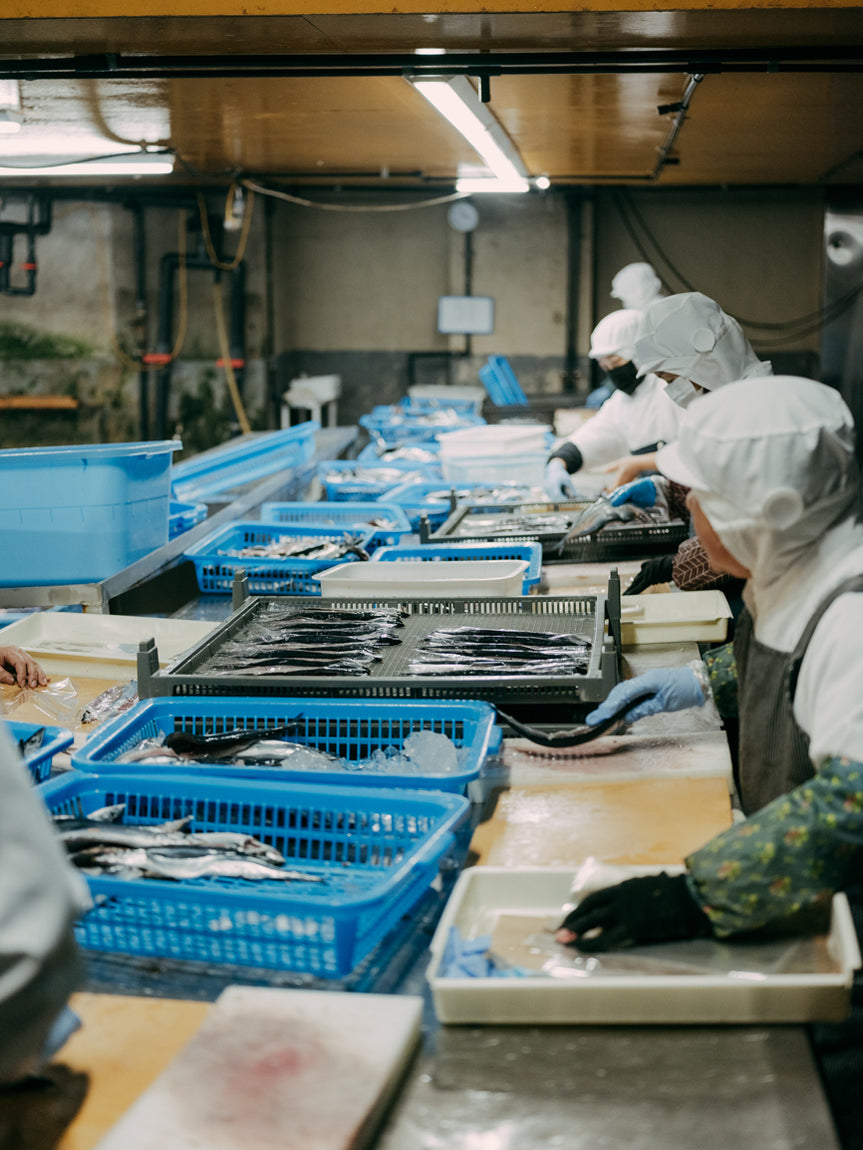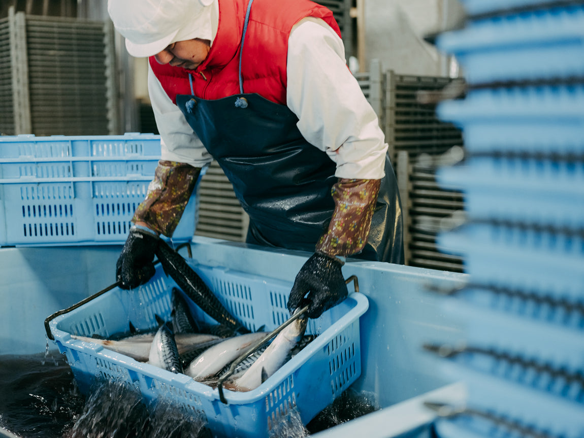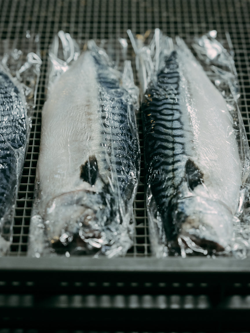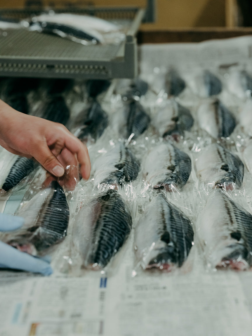 「干物の味の8割は魚の質で決まる」と島屋2代目の寺島さん。一番脂の乗った旬の鯖が漁れる11月を狙って1ヶ月間ノルウェーに滞在し、全体の5〜10%ほどの漁獲量しかない600g以上のふっくら厚みある天然鯖を確保します。ノルウェーは、魚が卵を持ち始めたら漁が禁止になるなどの徹底した資源管理のもと持続可能な漁業が確立されており、先進的な冷凍技術によって船上で瞬間凍結された鯖は高鮮度のまま加工でき、滋味深いしっかりと食べ応えのある干物になります。