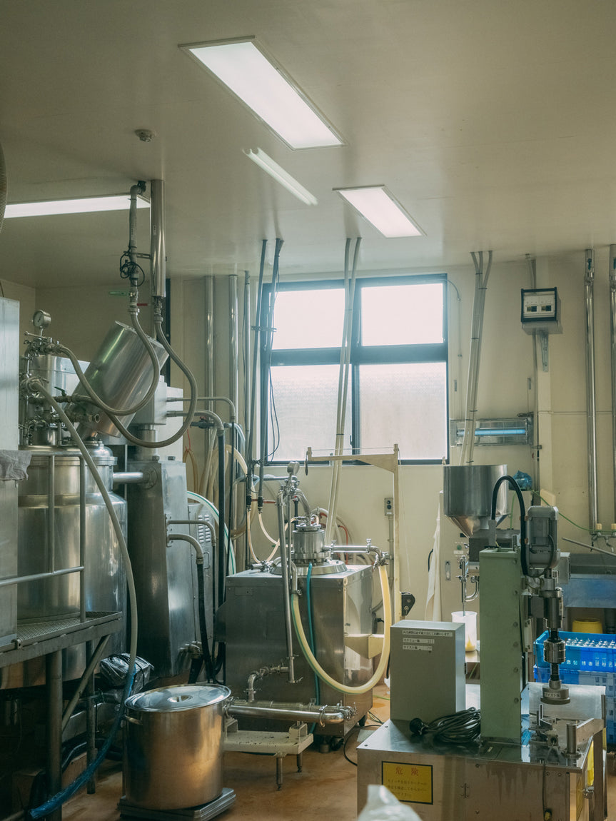 洋食化が進む時代を読み、前工場長の本郷さんを中心に3年かけてマヨネーズを開発したのが45年前。シンプルで安心安全を第一に、遺伝子組み換えでない厳選した原材料だけを使い、酸味とコクのバランスの良い味を無添加で目指しました。中でもマヨネーズの8割を占める油は、口に入れた瞬間にふわっと香る厳選した菜種油の一番絞りを採用。酸味のプロフェッショナルとして、自社で作ったホワイトビネガーと国産りんご酢、レモン果汁をブレンドし、つんとせず食べやすい黄金比を開発当初から守り続けています。