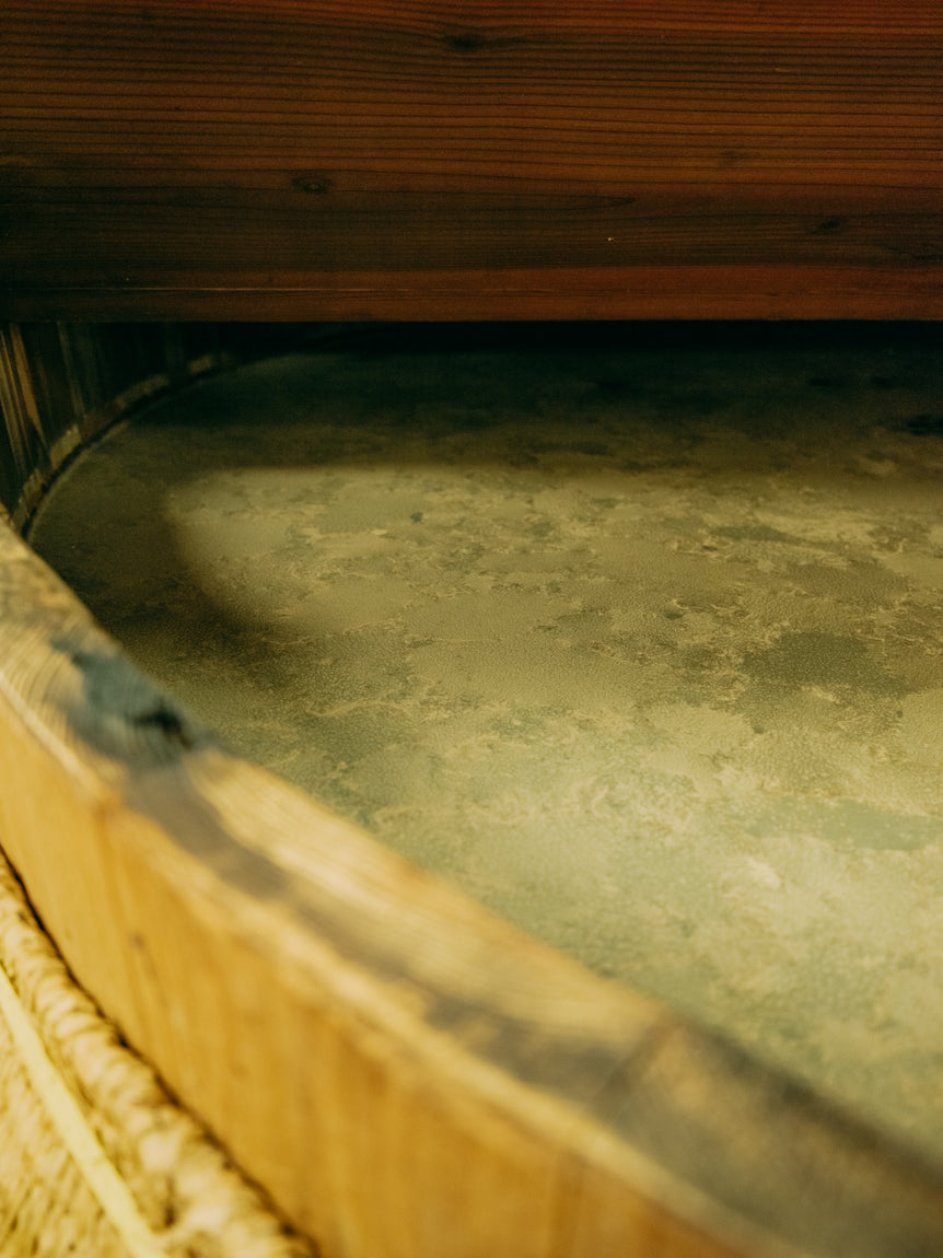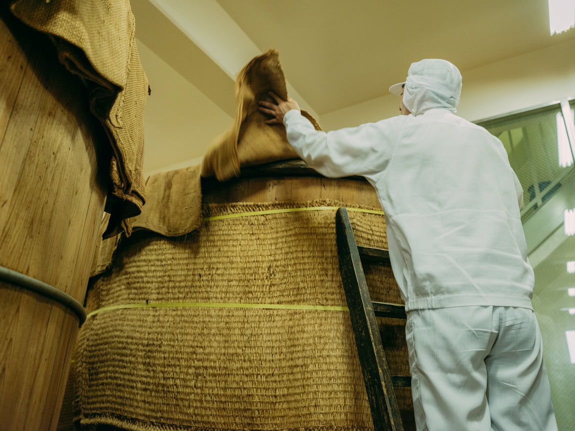 創業当初から食酢醸造の技術を磨いてきた私市醸造では、マヨネーズにも自社で作ったホワイトビネガーとリンゴ酢を使用。私市醸造では、江戸前寿司や和食に欠かせない長期熟成の伝統的な「表面発酵法」と、ドイツで開発された近代的な「通気発酵法」の2つの方法で醸造しており、マヨネーズに使われる酢は後者で作られます。原材料のフレッシュさと香りを残した高酸度の酢だからこそ、まろやかさと酸味が共存するスッキリと飽きのこない味わいに仕上がります。