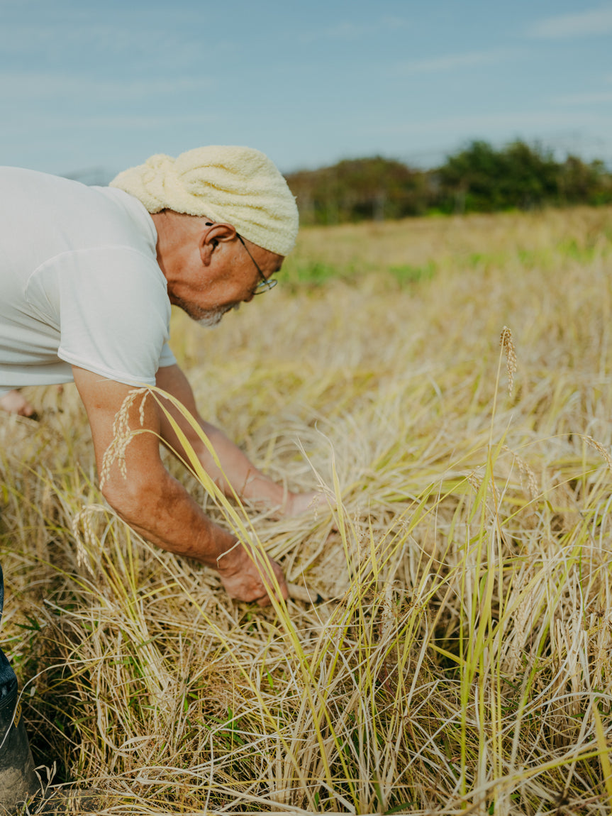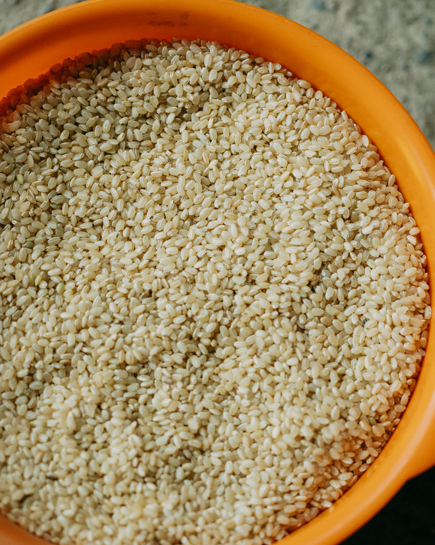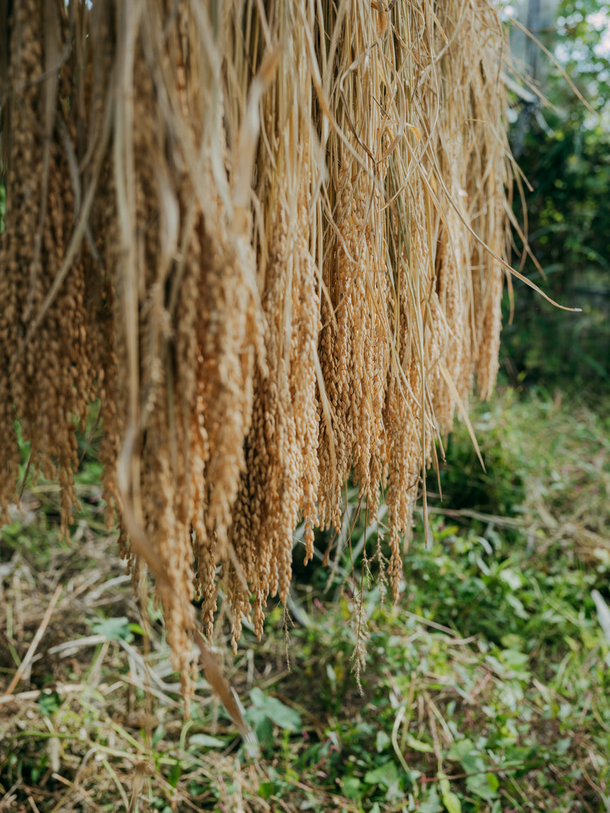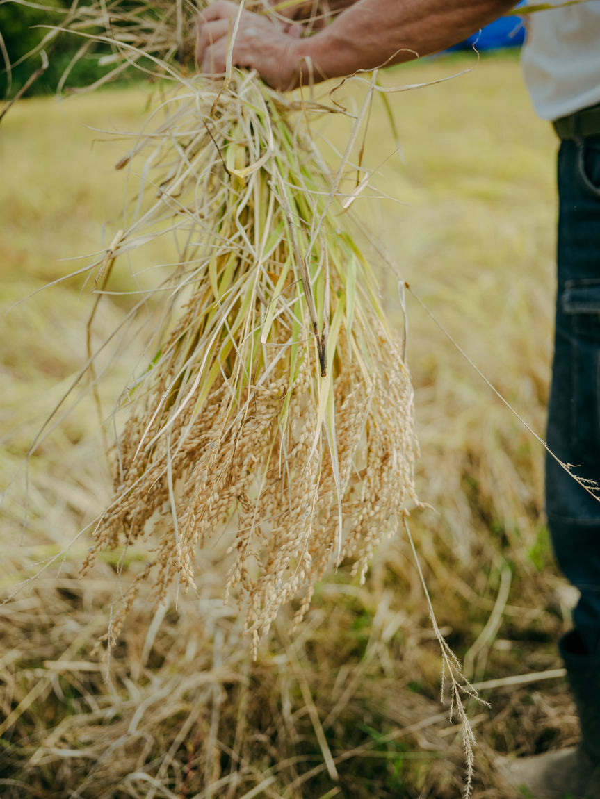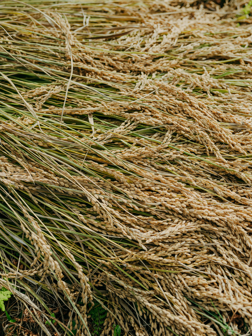 2017年頃に秋田の知人から亀の尾の種を譲ってもらい、以来自家採種で種もみを繋いできました。また育苗期には、良い苗が育つように調合された専用培土を購入する農家が多い中、佐久間さんは自分の稲が生まれ育ってきた田んぼの土だけを使って苗を育てています。それを繰り返すことで、栽培を始めたばかりの頃は収量の少なかった亀の尾もだんだん土地に順応し、今や豊かな実りをつけるようになりました。