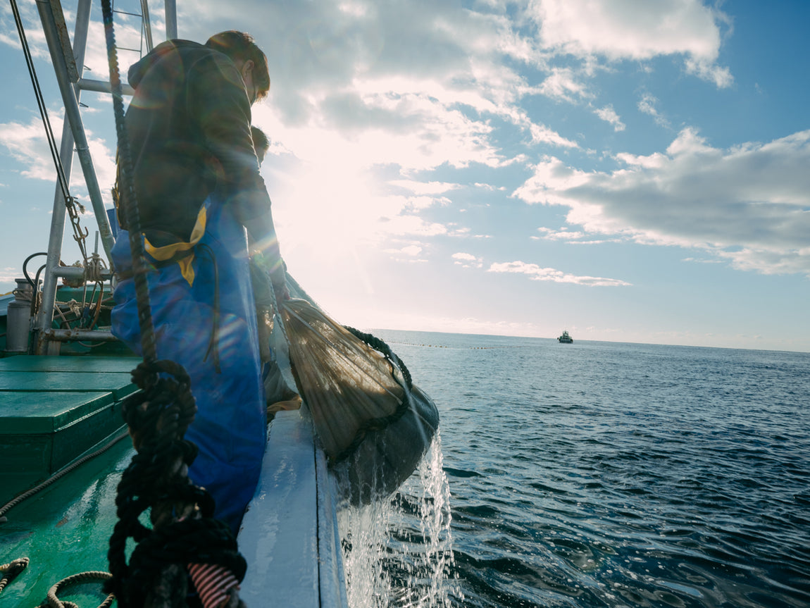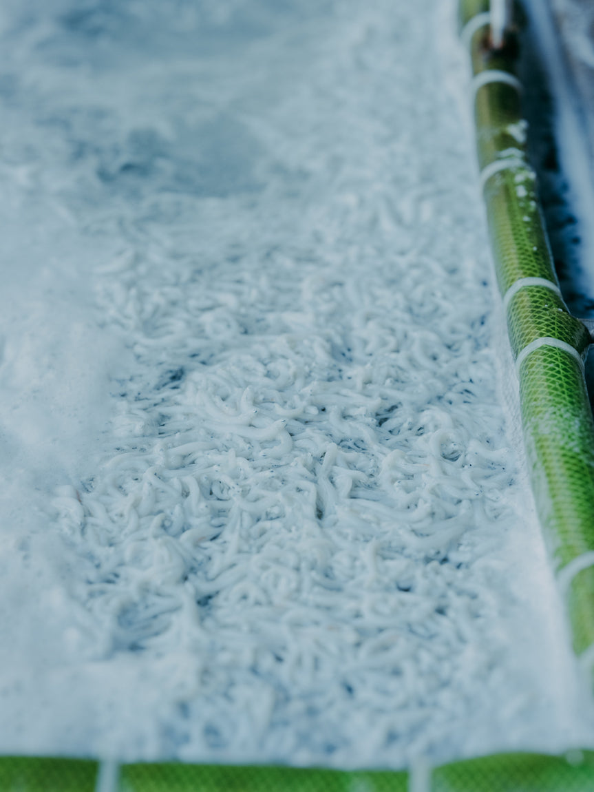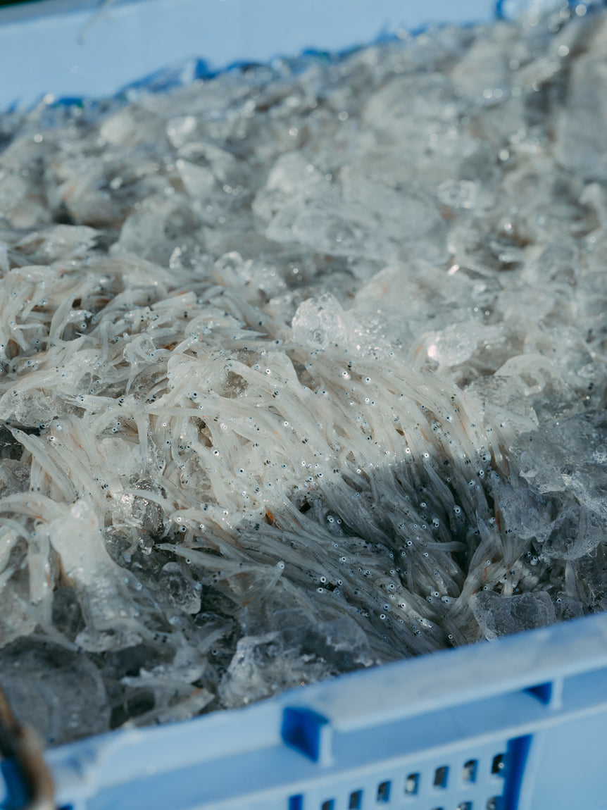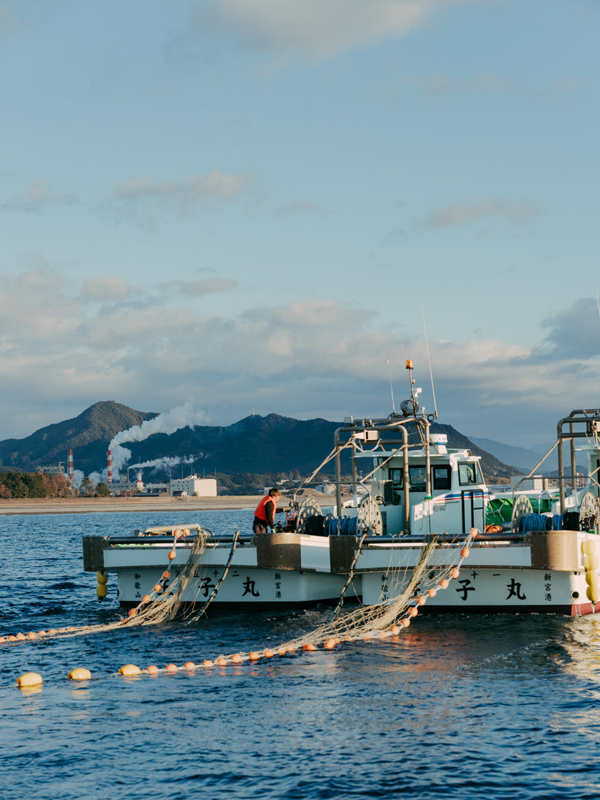 世界遺産・紀伊山地の森で育まれた栄養分が、熊野川からたっぷりと流れ込む熊野灘。その豊富な植物性プランクトンを求めて海のプランクトンがたくさん集まるので、脂が乗って旨味が濃厚なしらすが育ちます。また波穏やかな湾で行われる一般的なしらす漁とは異なり、荒々しい黒潮の影響を受ける外海での漁のため、不純物が少なく、雑味や臭みの無いクリアな味わいに繋がっています。