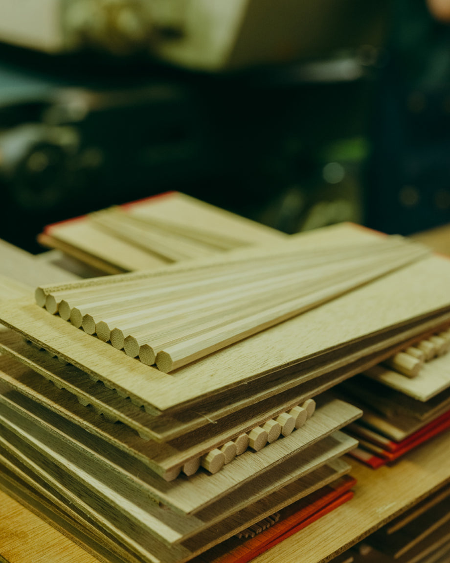 箸は2本1組で数える道具。高野竹工ではその2本の組み合わせにもこだわり、竹を割った時点でもともと隣り合っていた2本を「対」と呼び、全ての作業を終えてお客様の元へ届くまで、ペアが離れ離れにならないよう管理を徹底しています。別々の素材から切り出した2本ではなく「対」の2本を1膳の箸に仕立てることで、手に持った時の力の伝わり方や表面の模様が揃い、使い心地が抜群に良く、より壊れにくく美しい1膳が完成します。