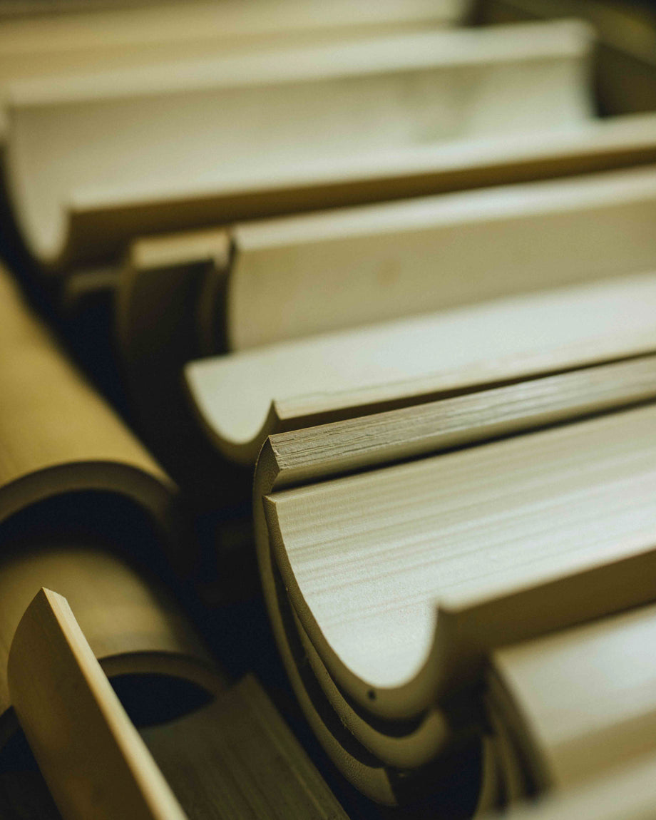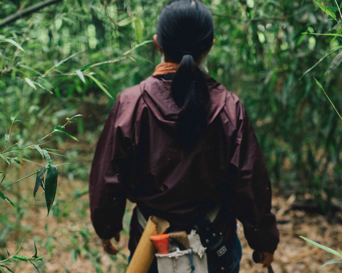 古代、箸用として朝廷にも納められたという京都・乙訓(おとくに)産の竹。そんな品質の高さと生育環境を守るために、高野竹工では自ら竹林を管理し、使われる目的によって相応しい竹を選び、伐り子と呼ばれる専任の職人が切り出すところから高野竹工のものづくりがはじまります。長年培ってきた技術を継承しながら、竹1本1本に火を入れ、油抜き、天日干し乾燥、荒ごなし、割り、削り、ため直し、塗りといった工程を職人が分業し、上質で美しい竹製品を作り続けています。