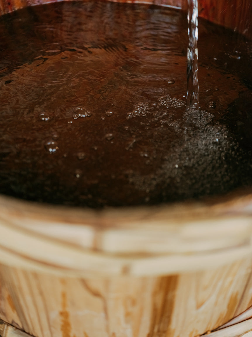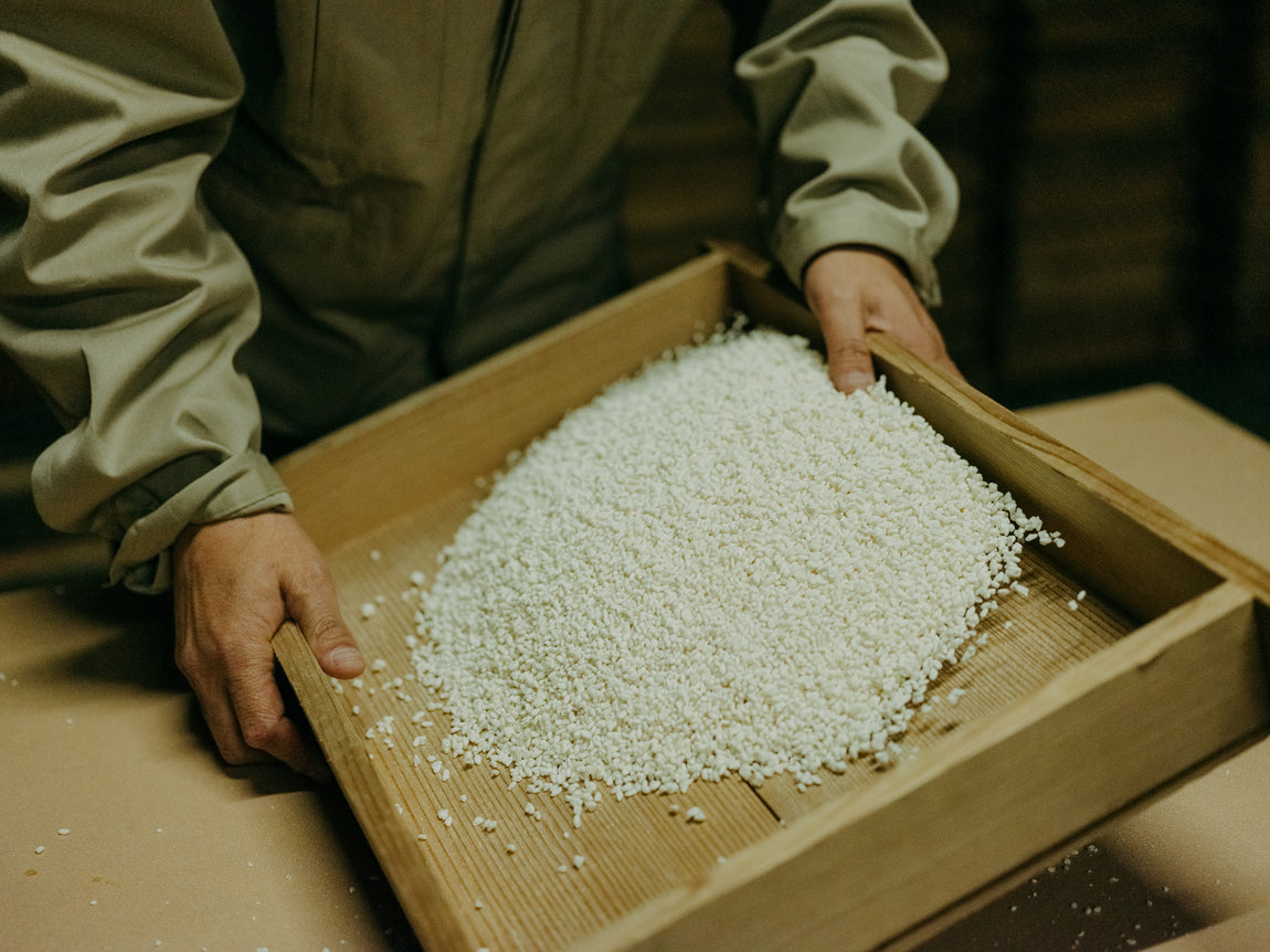 原料には、知多半島で減農薬栽培された契約米「若水(わかみず)」を100%使用。そのまま飲んでも豊かな旨みを感じられるのは、仕込みに「総はぜ麹」を使っているから。総はぜ麹は日本酒造りで使う麹の種類のひとつで、お米の表面を白い菌糸がしっかりと覆い、粒のすみずみまで麹菌が広がっているのが特徴とされています。米のでんぷんやたんぱく質をしっかり分解し、糖分やアミノ酸を豊かに生成することで、自然なコクと甘み、そして奥深い旨味が酒に溶け込んで、料理の味をしっかりと支えてくれます。煮物や出汁料理にはコクを、焼き物や炒め物には香ばしさを引き立て、少量でも料理全体の輪郭を際立たせる確かな調味料。お酒としてそのまま味わっても、やわらかな旨味と広がりのある余韻を楽しめる1本で、日々の料理を格上げする常備したくなる料理酒です。