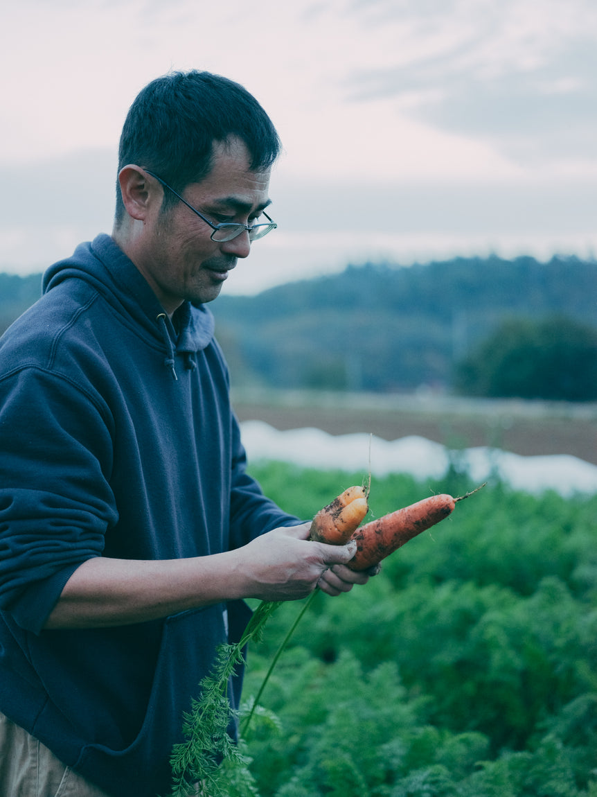 畑山農場が自家採種を行う根底には、「自然界と一体となって生きることを感じたい、そしてお客様にも感じてほしい」という哲学があります。単に種を守るためではなく、植物が持つ生命の循環を実感し、その営みに寄り添うことが、野菜をより美味しくすると考えています。代表的な自家採種品種には、北杜市の在来種である増富きゅうりや、寒さに強い在来種のニンジン『紅福冬越五寸(べにふくふゆごしごすん)』などがあります。自家採種を続けることで、畑山農場の土壌に適応し、代を重ねるごとに力強く、安定して美味しい野菜が育まれます。