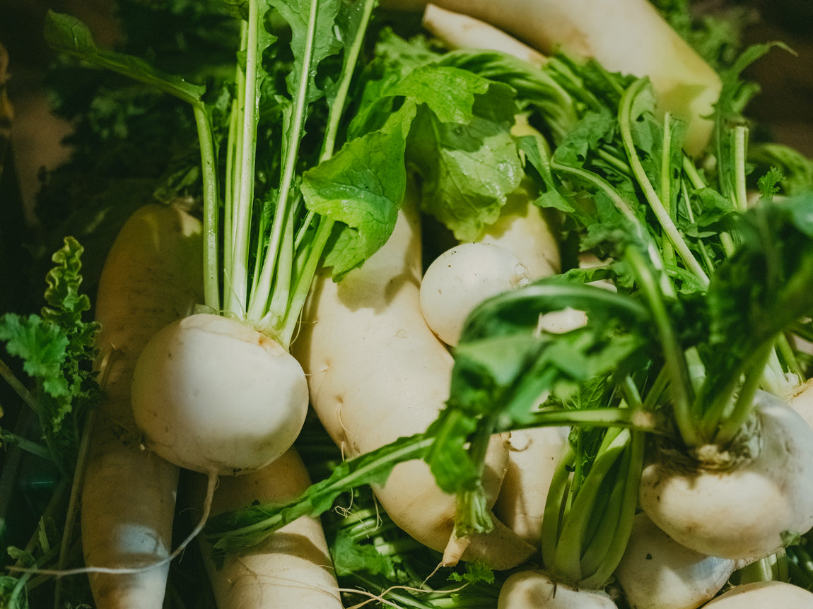 酪農や馬の飼育で使用する稲わらの植物性の繊維質を豊富に含む堆肥を使用して土づくりをする、循環型農業です。この堆肥には、野菜を健やかに成長させる多様な微生物が豊富に含まれており、土壌には空気の層がたくさんできるので「ふかふかで柔らかい」状態になります。微細な空洞に雨水が適度にしみ込み、根からゆっくりと豊かな栄養とミネラルを吸収できるため、野菜が丈夫に育ちます。化学肥料に頼らず、自然の摂理のままにゆっくりと育つと、単調ではない複雑な旨みと滋味深さが増します。また、野菜そのものの免疫力が高まるので病害虫に強くなり、農薬に頼らずに育てることができます。