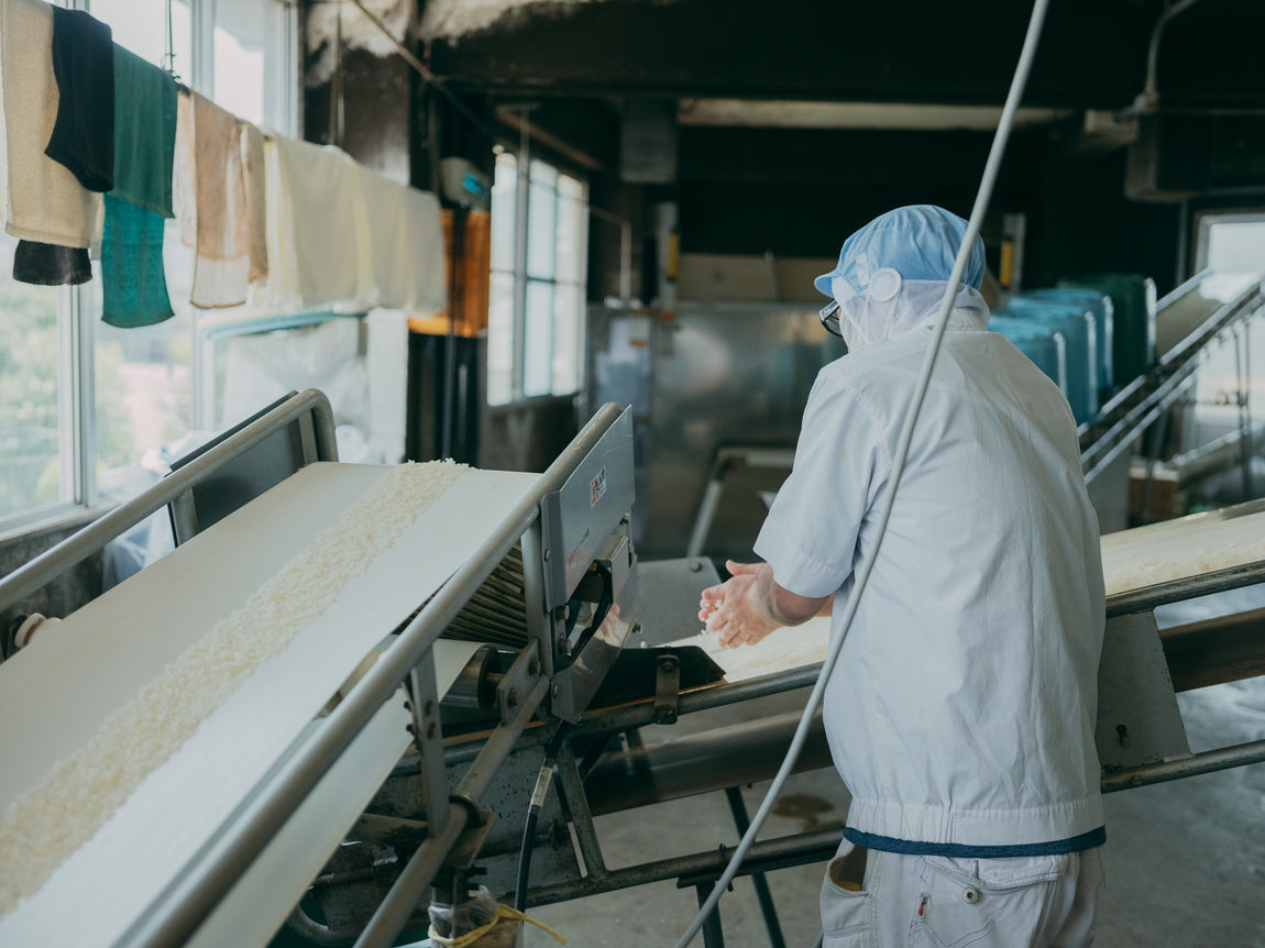 味噌の成分の約50%は水分。米や大豆を洗って浸け、ボイラーで蒸しあげ、、麹の発熱を冷やす、味噌づくりの工程すべてに水が欠かせません。マルカワみそのある福井県越前市は雪が多く降る地域。使用している水は、滋賀・福井・岐阜3県にまたがる三国岳の北側、ブナの原生林に囲まれた標高1,100mの山頂にある夜叉ヶ池を水源とする九頭竜川の支流・日野川の伏流水。味噌の仕込み水として最高の品質です。