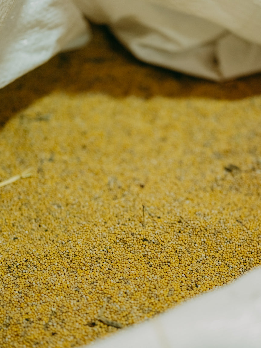 海外からの輸入がほとんどの日本のマスタードの中で、国産の素材のみで作られるものはとても希少。中でもORIKASAマスタードは日本で初めてのオーガニック認証を取得した純国産。マスタードシードやお酢の原料であるじゃがいも「さやあかね」は、北海道十勝の自社農場で化学農薬や化学肥料、堆肥等は使用せずに自然循環に即した農業のもと育てています。7月に満開に咲く黄色いマスタードの花は畑一面に甘い花の香りを漂わせ、その後に1mmほどの小さな実をつけます。その実を約2000粒使用することでこの1瓶が出来上がります。
