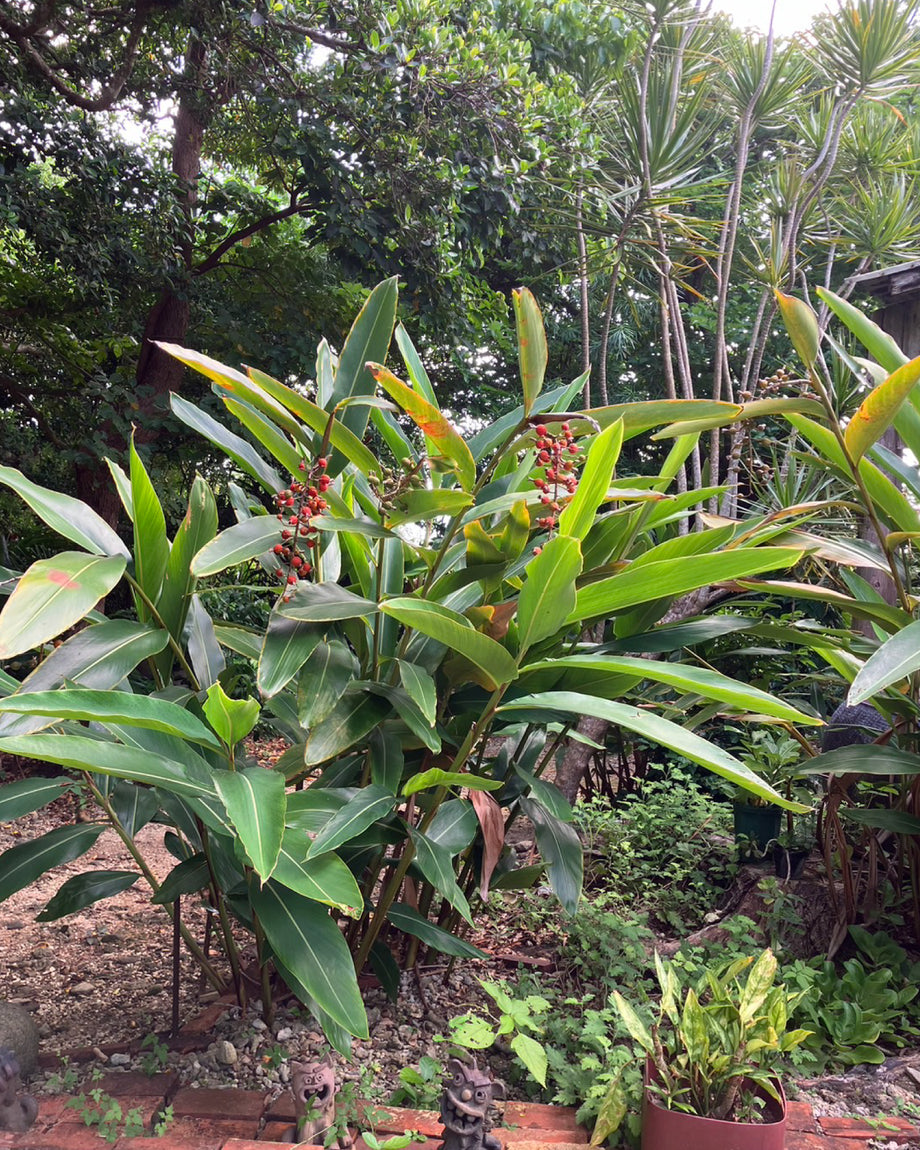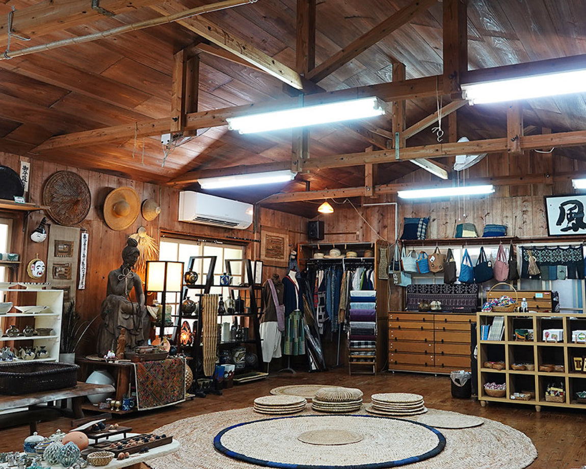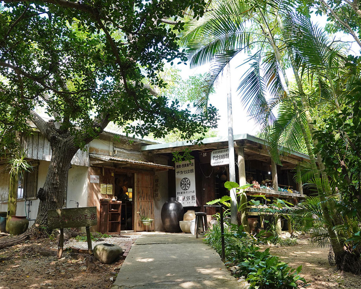 石垣島に広く自生する月桃は、琉球時代から命の薬(ぬちぐすい)として島民の心と体を癒してきた植物です。抗菌作用のある葉は旧暦行事で振舞われる餅(ムーチー)やおにぎりの包みに。丈夫な茎は虫除け効果も高いので、長持ちする敷き物の素材として主に活用されてきました。 やちむん館工房では、集落跡地を利用した約9,000坪の畑で月桃を栽培。時折ご近所さんが自宅や畑の周りに自生するものを刈ってきてくれることもあるそうです。