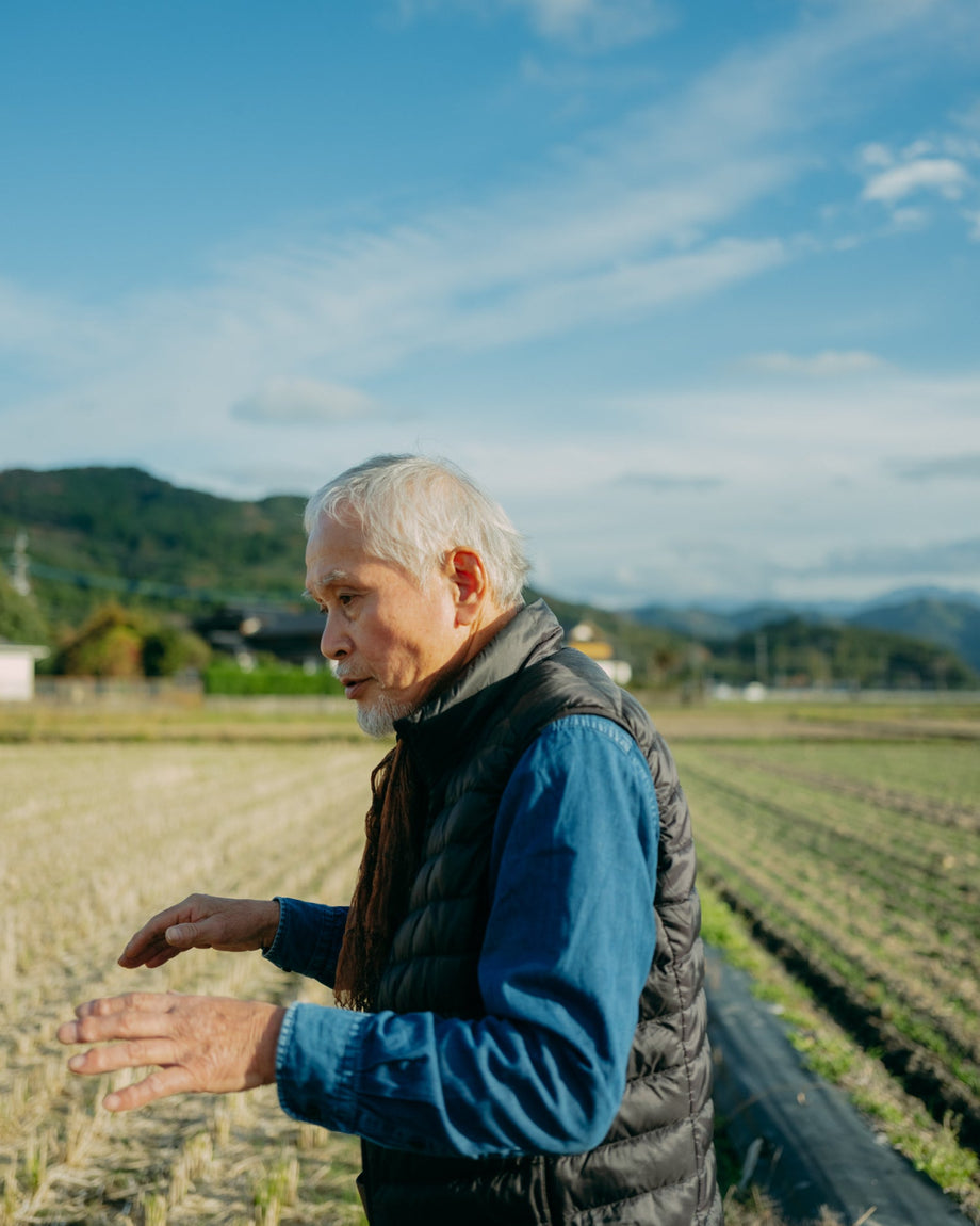 奥様のご逝去を機に、家族を育て守るために父から農業を後継。1990年の就農当初から有機栽培に取り組み、早期に自然栽培へ転換しました。80年以上自家採種でつながれてきた健康な種もみを使い、自然から生まれたものを収穫し、自然に還したものを次の作物の糧にするという循環の中で、稲と会話し食べ手の健康を願いながら米作りを続けています。