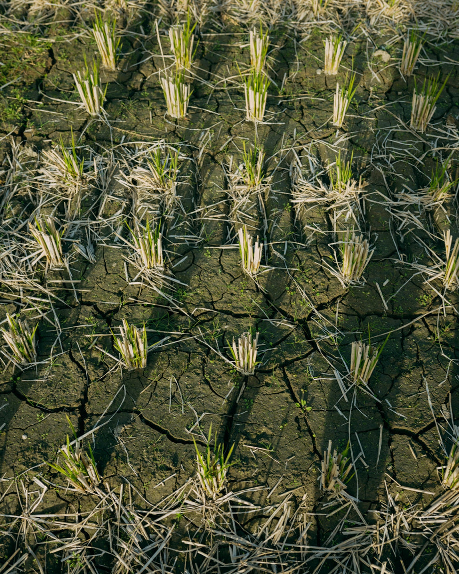 田んぼの有機物の酸素消費や酸性雨の影響などで土壌の酸化が進行すると、稲の根腐れや生育をサポートしてくれる微生物の活動低下に影響すると考えられています。そのため、おがた健康農園では蘇生水素水の散布によって田んぼを還元化し、多様な微生物が活発化するように土壌改良に注力。研究と実践、そして長年の自然栽培の継続によって、安定した豊かな土壌環境を実現しています。