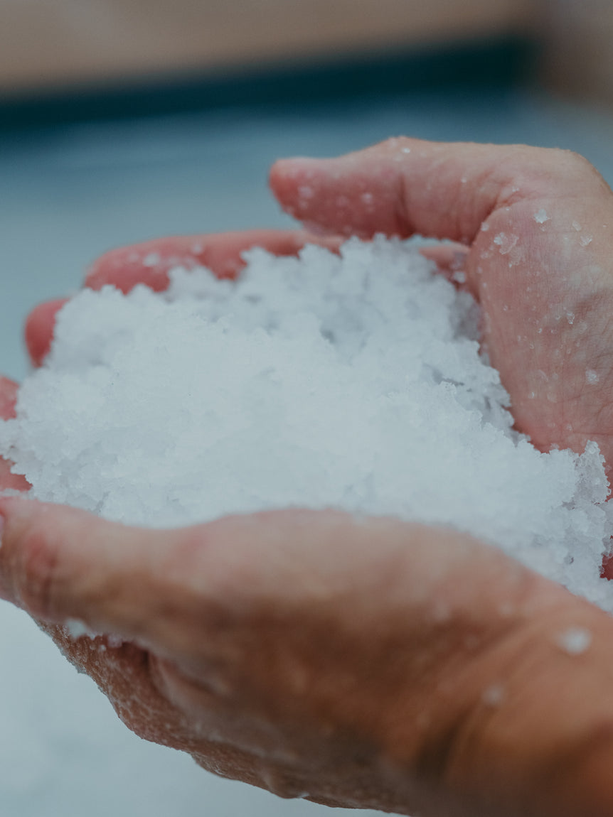 甘み、苦み、酸味、塩味をバランスよく、人や素材になじみよく着地させるために開発された独自の製法から、多様な塩が生まれる中で小坂さんが納得するものだけを商品にしています。時には料理人の求める味へコントロールすることもあるというから彼らのリファレンスの多さは計り知れません。ナトリウムやマグネシウムなどミネラルの成分を職人の勘で手をかけることで、シャープさや苦み、甘みなどを出すことも自在だというのは驚くばかり。ミネラル不足が顕著な現代に於いて、体の血液や体液は海水と似通っています。そのため、体のミネラルバランスを整えるには良い塩が必要と言う小坂さん。どんなサプリメントにも成し得ない体にも嬉しい塩梅になっています。海と人をつなぐ架け橋となる塩を描き、日々想いを結晶しているまさに職人技が光る塩なのです。