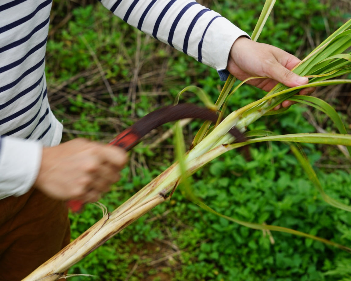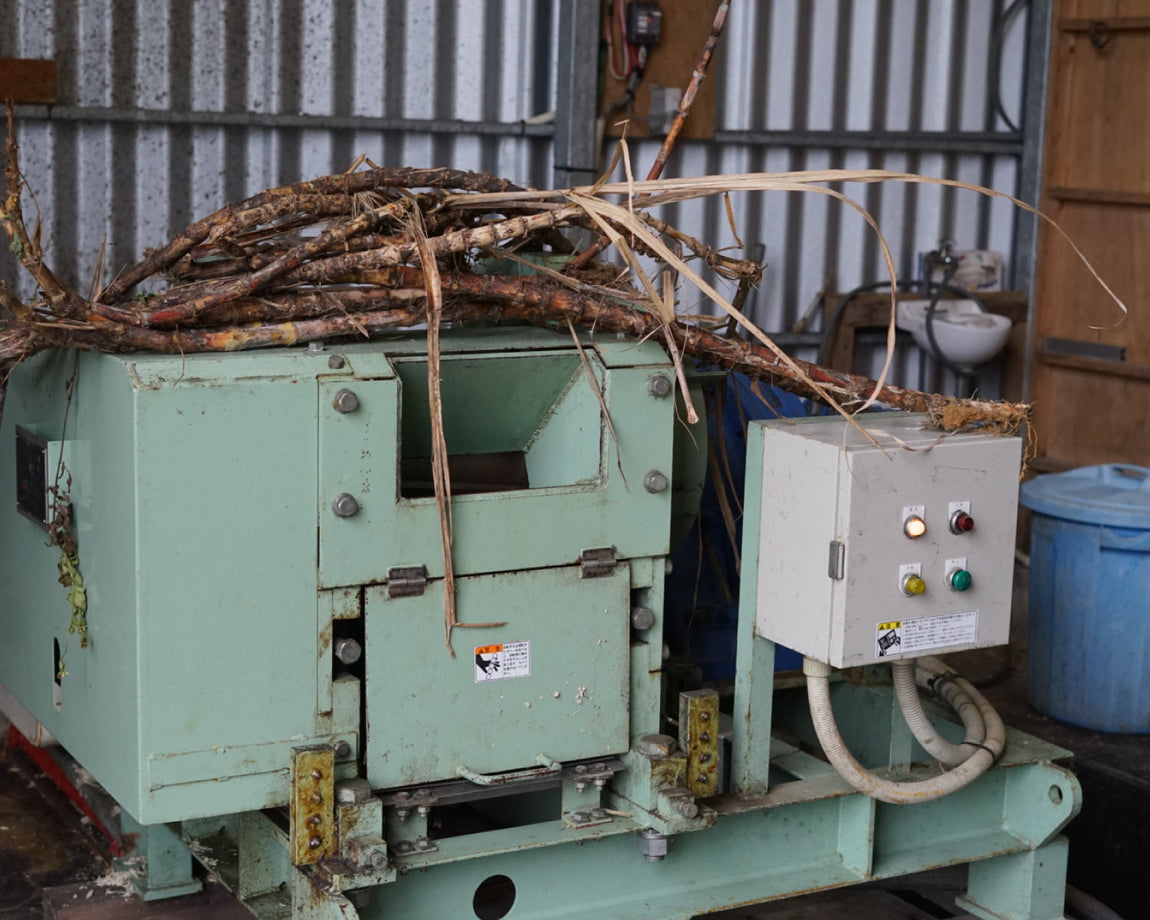 機械による収穫や裁断は行わず、手作業でサトウキビを刈り、長さの不揃いな状態で圧搾機にかけています。1本1本の形状に合わせて手刈りすることで、余計な切り口を増やさずに乾燥や劣化を食い止め、また雑味の要因である葉の混入を防止。収穫したてのサトウキビの風味や鮮度を最大限保ったまま、糖汁を抽出しています。