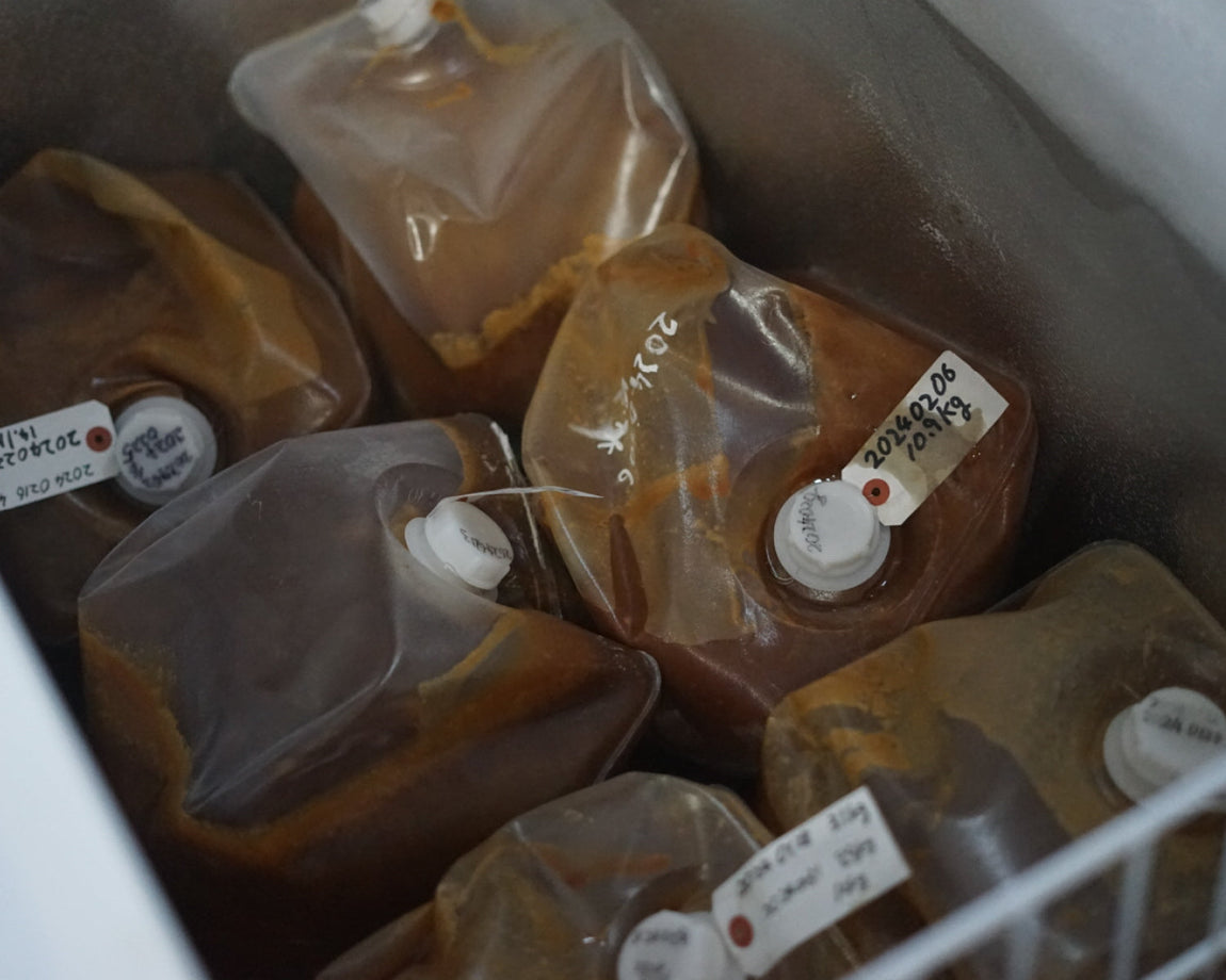 徳之島のほとんどの農家が慣行栽培を採用する中、2018年から自然栽培と苗の自家採取に取り組み、切り落とした葉やバガス(搾りかす)は畑に戻すなど自然な土壌環境や循環の中でサトウキビを育てています。そんな原料から作られるきび砂糖は、雑味の無いクリアな甘さが特徴で、糖度は20超。一般的なきび砂糖の糖度(14度前後)を凌駕する数値です。