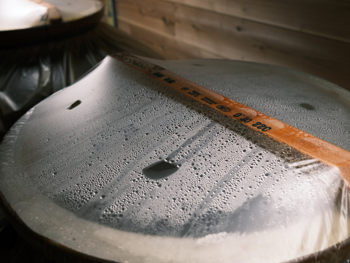 戸塚さんが濾過をしない理由は「濾過したものよりおいしいと感じたから」。お米の豊かな風味を最大限お届けするために、関東圏で唯一現役という昔ながらの製法を守り抜き、江戸期から伝わる手作りの甕を使って発酵に5ヶ月、熟成に8ヶ月。酒粕が沈むまでひたすら待ち、火入れも濾過もしていない上澄みだけを瓶詰め。また残った酒粕は近隣の養豚場に譲るなど、お米を最後までしっかり使い切るという造り方を続けています。