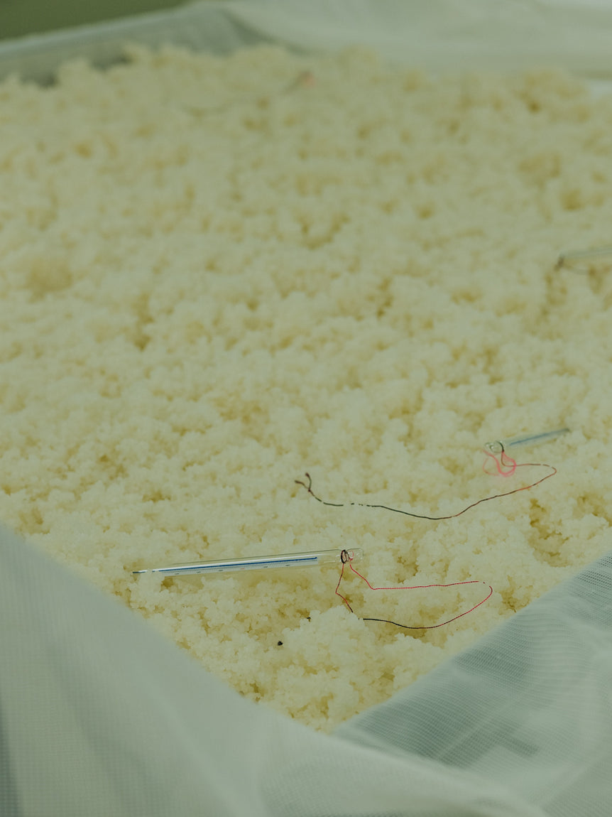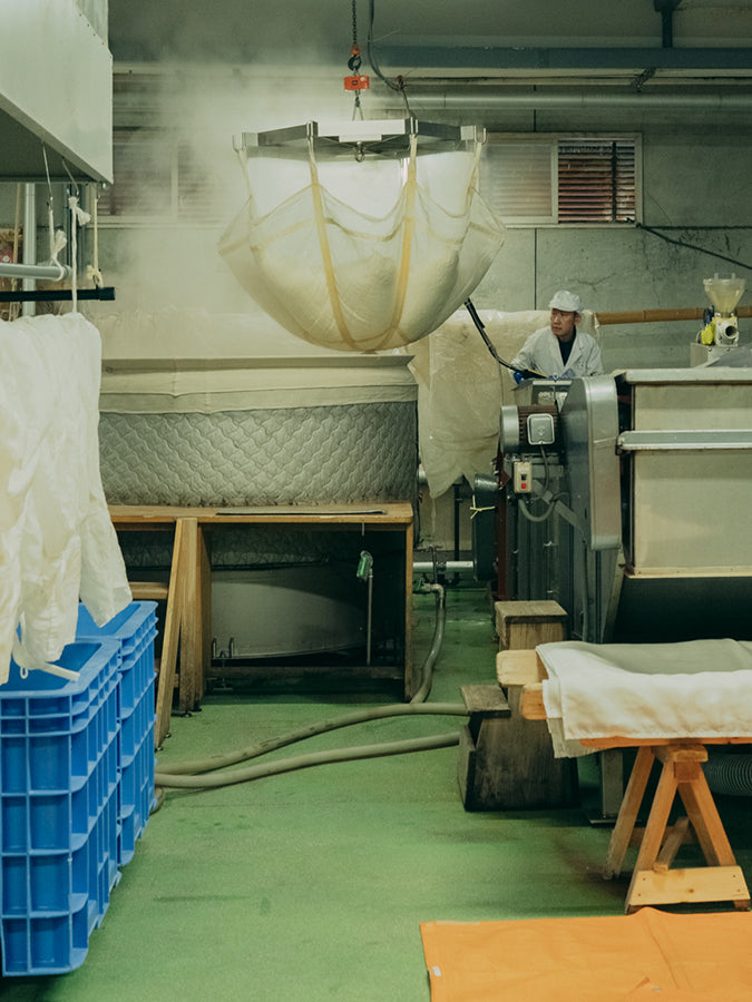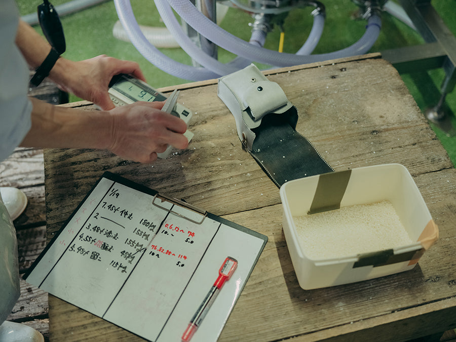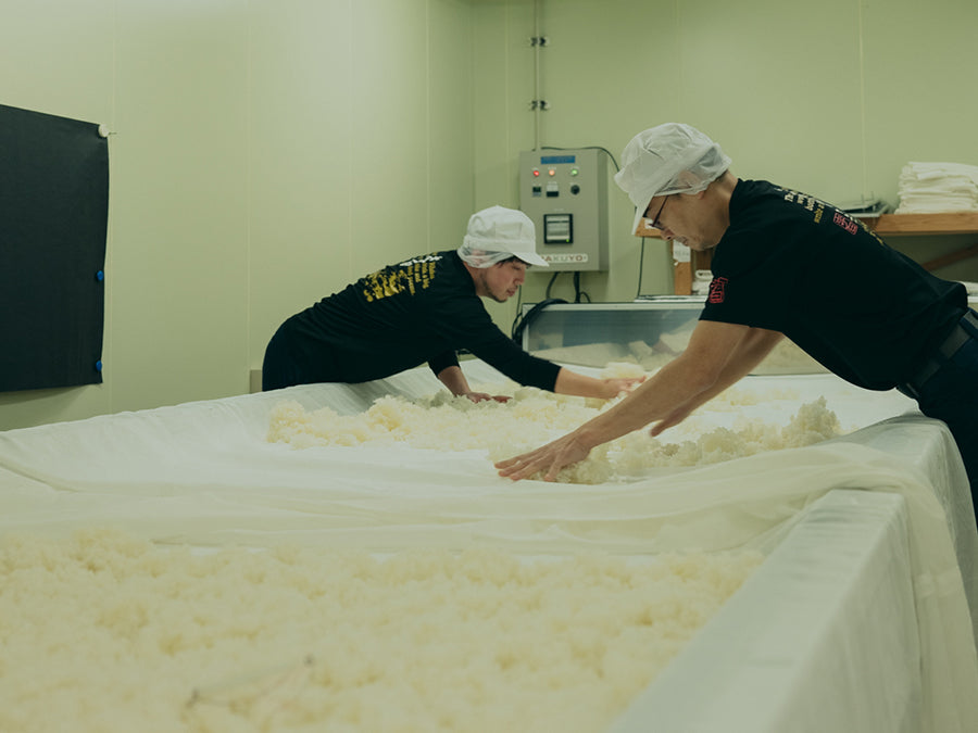 李白酒造では酒造りの工程で出る酒粕を蒸留して“粕取り焼酎”を蔵人が造り、米麹と掛米と共に仕込み、自然の力だけで“みりん醪(もろみ)”を発酵。それを搾って熟成・瓶詰めするという、原料から製造までの一貫生産を続けています。そんな伝統の製法とおいしさを守るためにも、人の手による繊細な調整・確認作業を根幹に持ちながら、一人の職人に頼りきりにならない「みんなでできる酒造り」を目指しています。