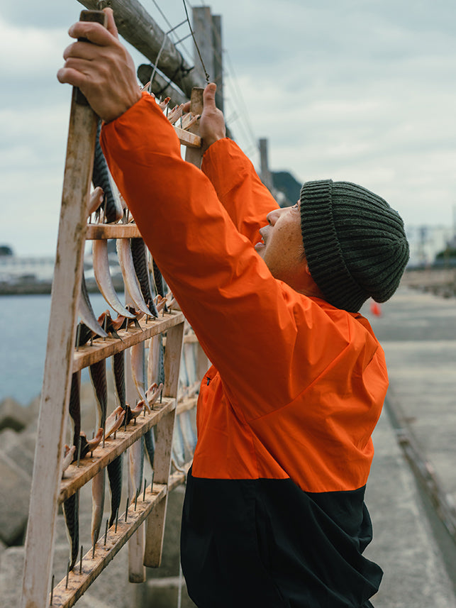 平田さんが干物の作り方を教わったのは、地元では有名な干物名人のお母さん。古くから同じ干場で干物をつくり続けてきた、まさに名人。長崎に移住し、漁業研修を受けながら並行して学んだそのすべての工程を職人ひとりで行っていくことで、その味を継承することができる。天候や魚の身質を日々見極めながら、自然と対峙してつくる干物づくりは感性の仕事そのもの。