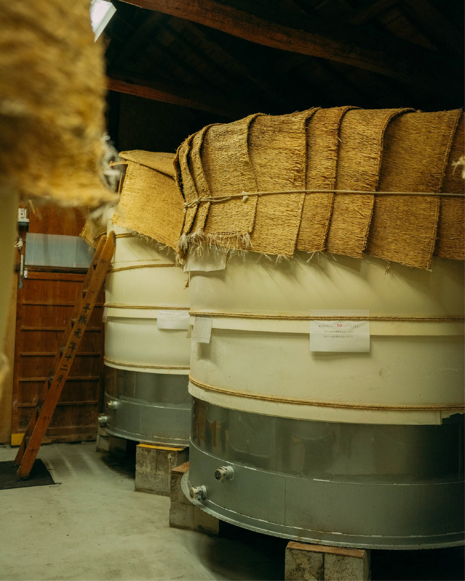 毎年冬になると杜氏が約100日かけて麹、酒母、酢もと諸味を仕込みます。そして水と種酢と酢もと諸味をタンクに入れ、酢酸菌が自然に表面発酵するのを待つこと100日。さらに300日かけて何度もタンクからタンクへ移し替えて空気に触れながら熟成させることで、よりまろやかな風味に仕上げています。酒造りは泊まり込み作業が当たり前とされてきましたが、「若手がものづくりに挑戦できる環境を育みたい」という想いから、飯尾醸造では週休2日可能な体制を実現。創業当時の技と想いを受け継ぎ進化させながら、味には一切妥協せず、常識に捉われない酢造りを続けています。